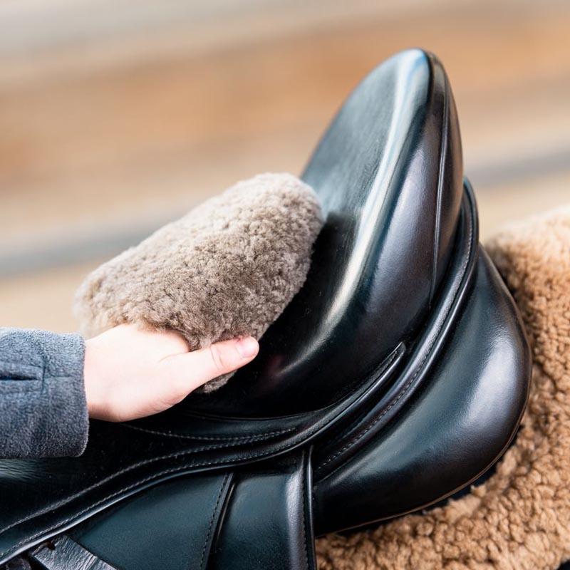 Grooming Handschuh aus Lammleder für die Pferdepflege mit Stretchverschluss.